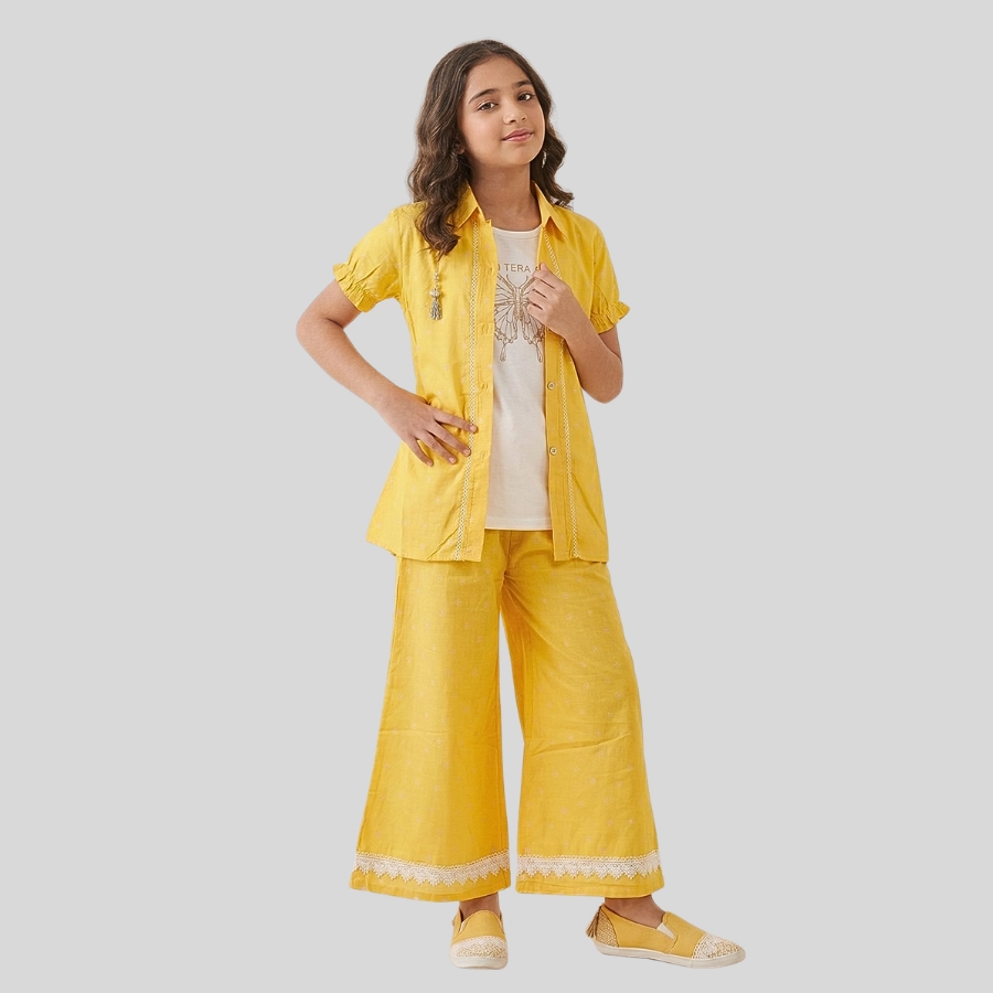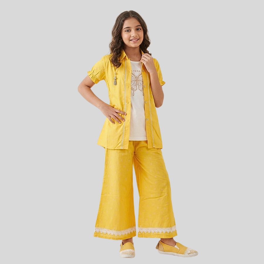 Upgrade your style with this trendy Girls Open Shirt Trouser With White Inner Three Piece outfit. This fashionable set includes an elegant open-style shirt, a comfortable matching trouser, and a classic white inner, creating a complete and stylish three-piece look. Made from soft and breathable fabric, it ensures all-day comfort while keeping a modern and chic appearance. Perfect for casual outings, gatherings, and semi-formal occasions, this outfit is ideal for girls who love contemporary fashion.