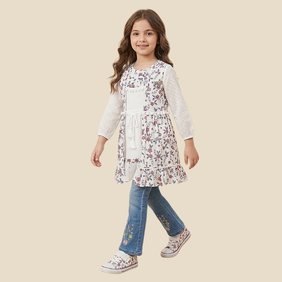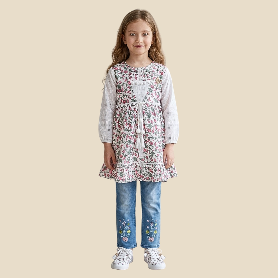 Upgrade your child’s wardrobe with this stylish Girls Open Style Long Shirt With Fancy Pant Dress. This trendy outfit features a beautifully designed open-style long shirt paired with a fancy pant, creating a modern and elegant look. Made from comfortable and breathable fabric, it ensures ease of wear throughout the day. Perfect for casual outings, family gatherings, and semi-formal occasions, this dress is ideal for girls who love fashionable and unique styles.