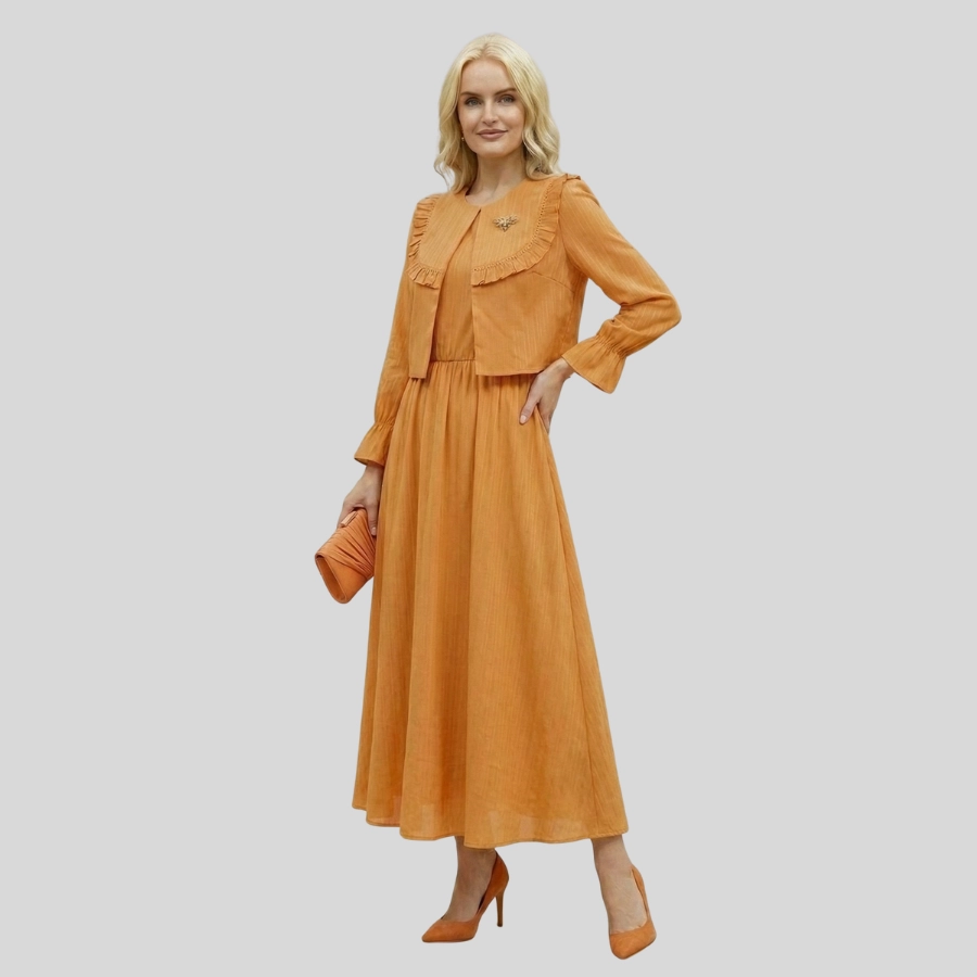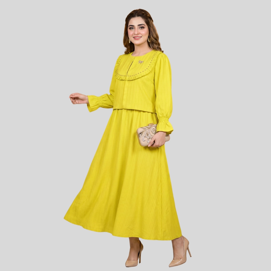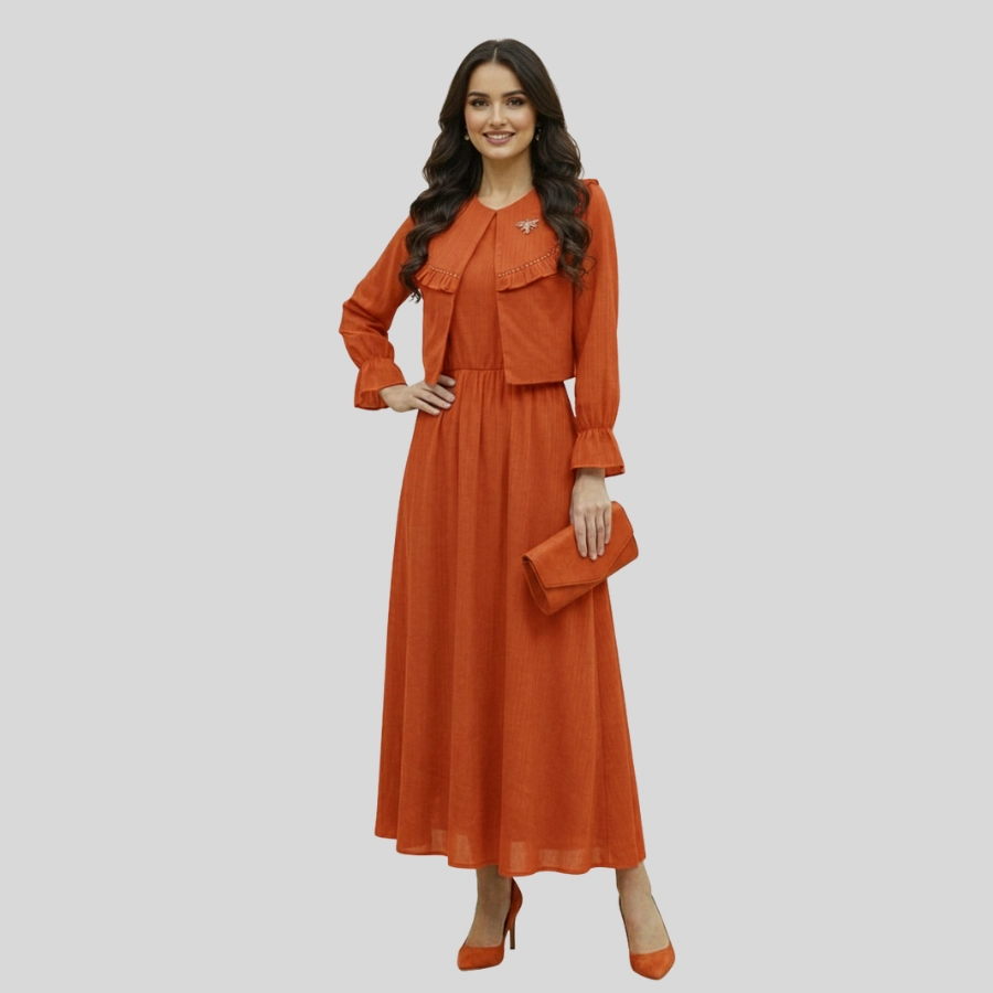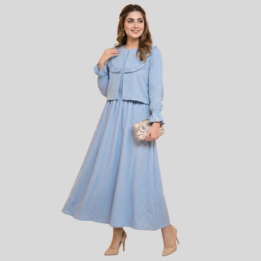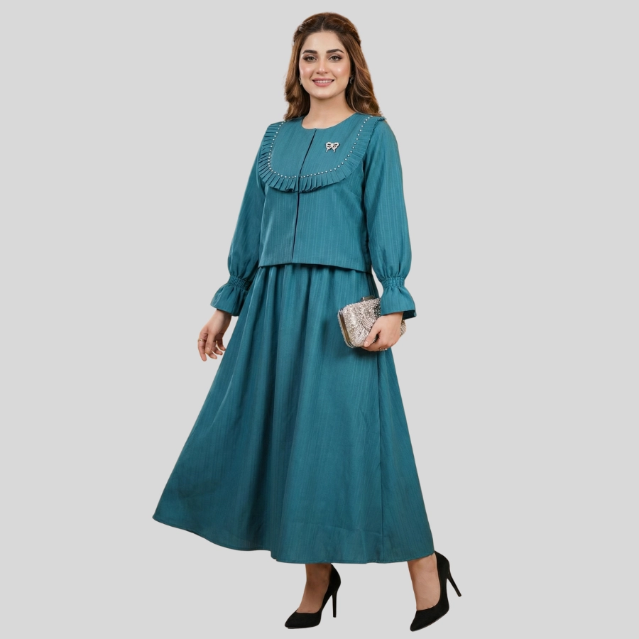 Enhance your style with this elegant Girls Two Piece Fancy Jacket and Skirt Style Long Maxi, designed for a classy and modern look. This beautiful two-piece outfit features a fancy jacket paired with a flowing long maxi skirt, creating a graceful and fashionable silhouette. Made with comfortable, quality fabric, it is perfect for parties, festive events, family gatherings, and special occasions. A perfect choice for girls who love trendy yet modest fashion.