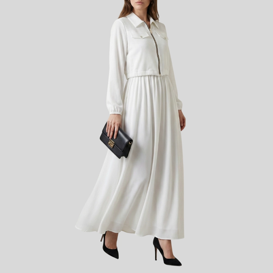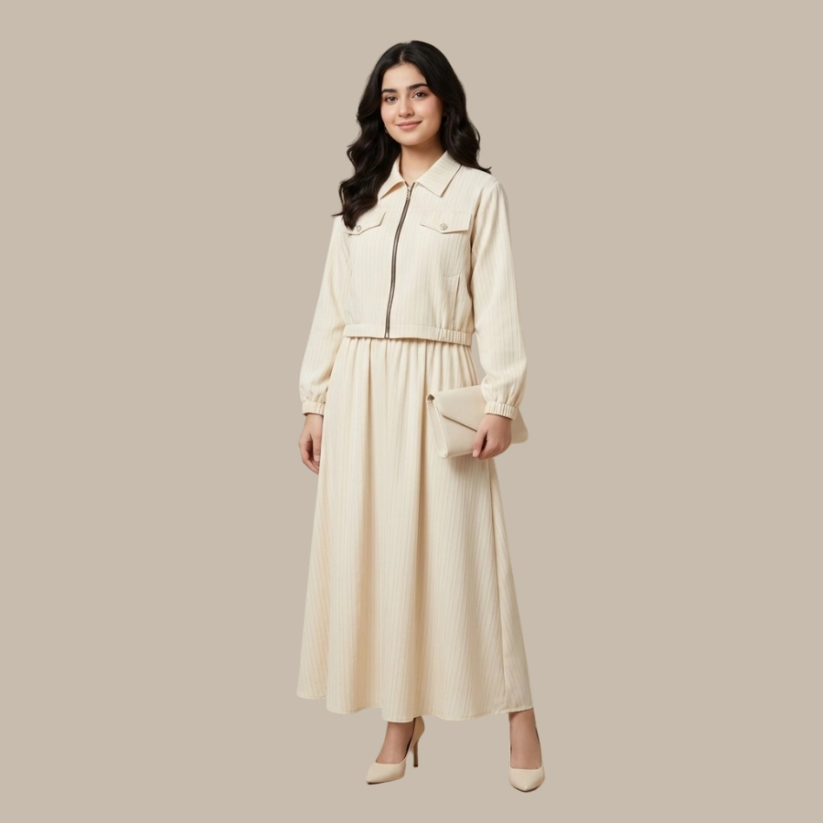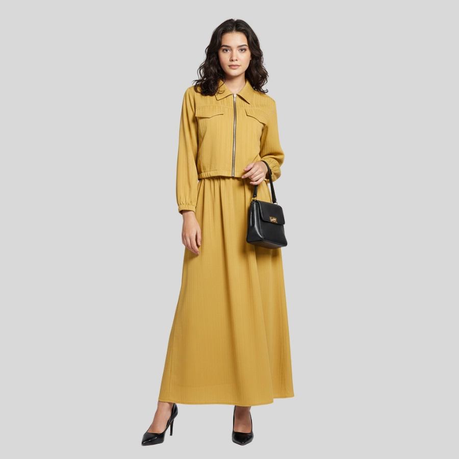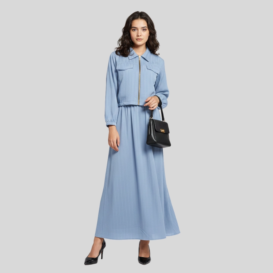 Step into effortless elegance with this Girls Two Piece Zipper Jacket and Skirt Style Long Maxi. This stylish set includes a modern zipper jacket paired with a beautifully flowing long maxi skirt, creating a graceful and trendy look. Crafted from comfortable, high-quality fabric, it offers a flattering fit and easy wear throughout the day. Perfect for casual gatherings, outings, parties, or semi-formal occasions, this two-piece maxi outfit is a versatile addition to any fashion-forward wardrobe.